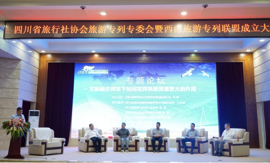8月28日,由四川省旅行社协会、四川旅投航空旅游有限责任公司、四川成都铁路国际商旅集团有限公司共同发起的旅游专列专业委员会暨西南旅游专列联盟正式成立。四川旅投集团党委副书记、副董事长、总经理杨川,中铁成都局集团党委委员、董事、副总经理徐涌出席成立大会并致辞。参加本次成立大会的代表包括省旅行社协会会员单位及相关合作单位约200家。